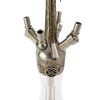 Model E31 to jedna z większych profesjonalnych fajek wodnych marki Mr.Eds. E31 Joystick jest to jeden z najnowszych i najbardziej wydajnych modeli grupy zestawów fajki wodnej Mr.Eds. Wygoda, piękno i klasa sama w sobie, zamknięta w Mr.Eds. E31 Joystick, może sprawić, że być może stać się ona Twoją ulubioną shishą. Ten model wart jest polecenia koneserom oraz profesjonalnym użytkownikom shishy. We wszystkich metalowych częściach zastosowano wysokiej jakości stal nierdzewną 304L, która charakteryzuje się większą wytrzymałością oraz odpornością na korozję i gwarantuje bezpieczne korzystanie z produktów. W rurce zanurzeniowej, wyposażonej w odkręcany dyfuzor służący do wyciszania dźwięków przy powstawaniu bąbelków, zastosowano stal nierdzewną, która jest zgodna z żywnością, jest odporna na uszkodzenia mechaniczne i zapewnia bezpieczne użytkowanie produktu. Ręcznie robiony dzban shishy przyciągnie wzrok, zachwycając pięknym, rzeźbionym wzorem. Taca, ze specjalnie wyprofilowanym otworem do odwieszania ustnika, jak i korpus fajki, zdobią piękne wzory przypominającym gałęzie drzewa. Wzory rysowane na stali powstają za pomocą obróbki laserowej i są jedną z cech, które tworzą w zestawie wrażenie premium. Wąż z bezpiecznego silikonu (stosowanego w smoczkach dla niemowląt jest również bezsmakowy i bezwonny) zapobiega zaczepianiu się dzięki miękkiej powierzchni. Jest również łatwy w czyszczeniu. Zestaw fajki wodnej jest zaprojektowany na 4 ruchome wyjścia, a ich kierunek można łatwo zmienić. Mr.Eds. E31 Joystick możliwość palenia fajki wodnej z więcej, niż jedną osobą. Zalecamy palenie fajki wodnej maksymalnie w 3 osoby (po podłączeniu węża do czwartego wejścia, proces ewakuacji dymu nie będzie miał miejsca). Dodatkowo producent wyposażył fajkę w elegancką, skórzaną torbę podróżną, do wygodnego przenoszenia produktu, lub do bezpiecznego przechowywania. Torba posiada uchwyt do trzymania w dłoni oraz uchwyt, który można rozpiąć na dwie część i korzystać z torby jak z plecaka i w nim bezpiecznie przenosić fajkę z miejsca na miejsce. Jest to przydatna, bezpieczna funkcja, gdy wybieramy się w podróż z naszą shishą. Zaletą torby jest również to, że możemy włożyć w nią shishę w całości, bez konieczności rozmontowywania jej na części, docenią to zwłaszcza użytkownicy, którzy nie lubią marnować swojego czasu na składanie fajki.