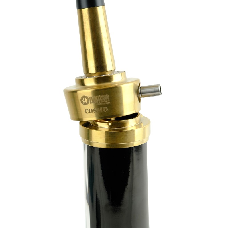 Shisha Oduman Cosmo Gold Black Body & Black Glass to fajka składająca się z korpusu w kolorze złotym, czarnym oraz czarnego szkła. Metalowe elementy fajki wodnej wykonane są ze stali nierdzewnej, pokrytej tytanem i posiadają powierzchnię Inox. Kolor szkła fajki bardzo przyjemnie komponuje się z jej korpusem. Czarny kolor butelki, przecinają dwa pasy, które ciągną się od podstawy dzbana, na całej jego wysokości, pionowymi, przezroczystymi paskami. Dodaje to shishy stylowego wyglądu. Pozwala także sprawdzić, czy w dzbanie jest odpowiednia woda. Dzban fajki wykonano z najwyższej jakości ręcznie robionego szkła.