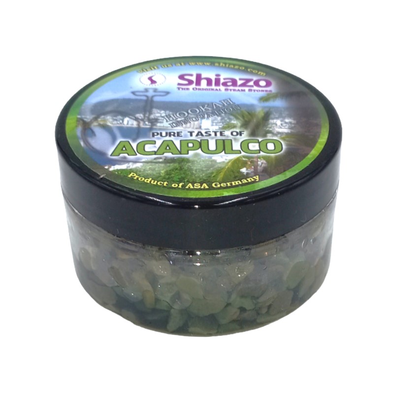 Kamyczki Shiazo Acapulco niemieckiej marki Shiazo, to produkt naturalny nie zawierający nikotyny. Beztytoniowe rozwiązanie Shiazo stworzyło świetną alternatywę dla osób, które chciałyby palić shishę bez ryzyka uzależnienia od wyrobów nikotynowych. Dlatego też, z myślą o tych osobach, powstała zdrowsza wersja melasy do fajki wodnej. Stworzono kamyczki do mieszania z aromatem. Jako że firma Shiazo może poszczycić się wyrobem dużej ilości aromatów więc każdy może znaleźć swój ulubiony smak do palenia. Ponieważ Firma Shiazo, jako jedna z pierwszych, wprowadziła na rynek europejski kamyki do palenia shishy oraz zdobyła zaufanie klientów w Europie, cieszy się rozpoznawalnością marki. Obecnie Shiazo znajduje się na liście liderów, którzy specjalizują się w beznikotynowych melasach do fajek wodnych.